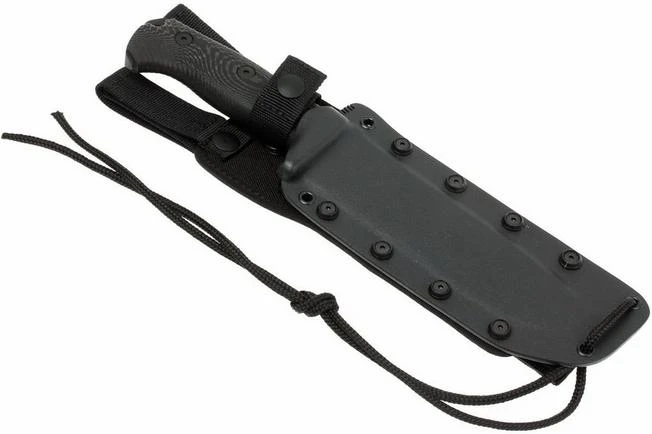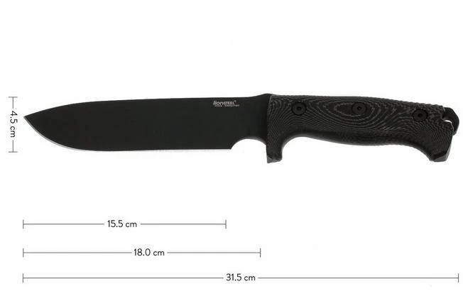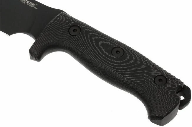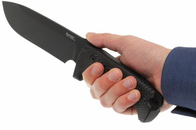 The M7 by LionSteel is an all-round fixed blade for outdoor use. The first version was a limited edition knife that was made in collaboration with Moletta, or knife maker Michel Pensato: the Carthago. With some adjustments this has become the M7: a knife with a full tang blade and micarta handle. The handle is more than big enough for your whole hand. However, on the blade a space was made for your index finger, to enable extra careful steering of the blade. A shallow, machined pattern in the micarta doesn’t only increase the grip, but also enhances the special design which makes it immediately recognizable as a Lionsteel blade. Unique to this knife is that the handle is machined from a single piece of micarta. Normally, two separate pieces of micarta will be mounted on the blade to create a handle, but the M7 is really placed within the micarta. This blade is a heavy duty type of blade. The blade of Sleipner-steel is 5.5 mm thick on the back. Combined with the hardness of 60-61 HRC, this knife will stand his ground under the toughest conditions.