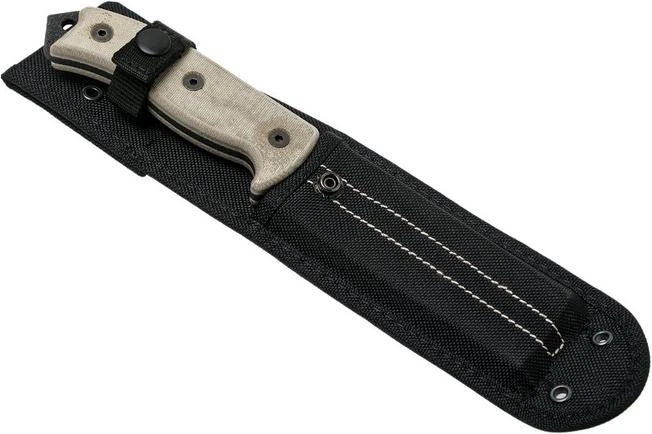 The Ontario RAT 5 is a solid survival knife with a blade made from 1095 carbon steel. This is strong type of steel that is easy to sharpen. The extremely sustainable powder coating on the blade protects it from the increased corrosion sensitivity of the carbon steel. That is why we recommend keeping this knife dry and possibly slightly greasy. The wonderful usage qualities of the steel guarantee a lifetime of pleasure. The knife is enhanced with a micarta handle The handle feels slightly coarse which is great because it is comfortable to hold and offers enough grip.