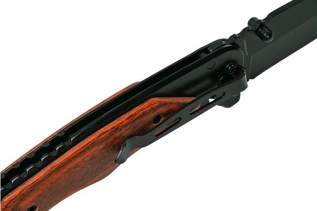 The Smith & Wesson Wood Handle Folder is a decent pocket knife for an affordable price. You open it with the thumb stud and then a solid frame lock blocks it to prevent it from closing unintentionally. The sides of the knife are enhanced with two wooden scales. As such the knife looks great and provides you with enough grip.