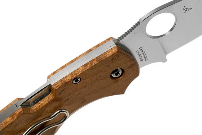 The Spyderco Chaparral is an exclusive gentleman’s knife, designed by Sal Glesser. The Chaparral collection is for Spyderco the perfect collection to experiment with exclusive and new handle materials. In this case the handle is made from Birdseye Maple. This type of wood got its name thanks to the pattern in the wood. These grains looks like eyes. Truly remarkable!