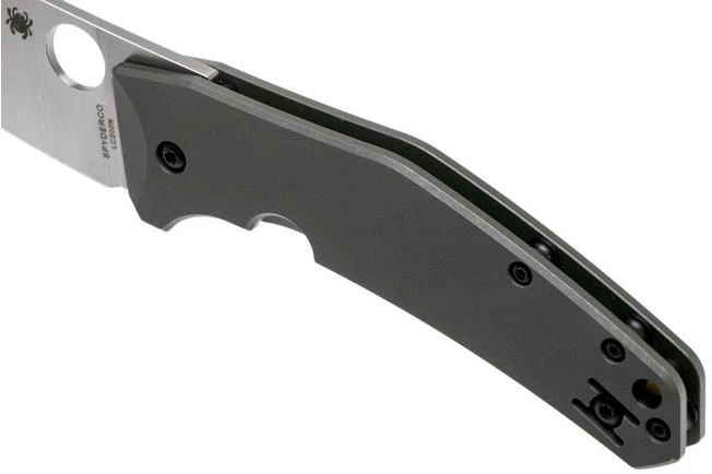The Spyderco Spydie Chef is the result of the third collaboration between the Polish knife maker Marcin Slysz and Spyderco. The Spyderco Spydie Chef is a pocket knife with a blade that might remind you of a Santoku knife (Japanese chef’s knife). And that is exactly what it is meant to look like. It is the perfect knife to cut ingredients into small pieces. The titanium handle is slanted between the pivot and the blade. This offers additional grip as you use the knife. A great detail on this beautiful knife.