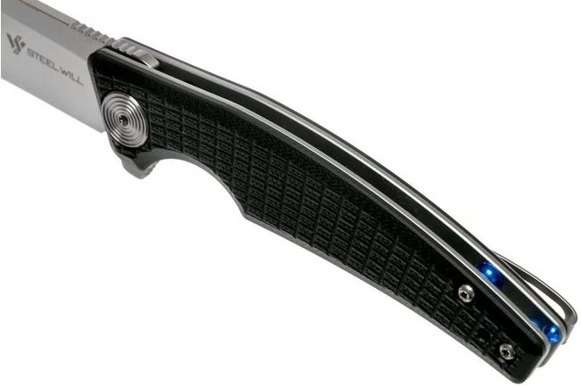 The Steel Will Shaula F61 is a slim and tough pocket knife, for a great price. The texture on the G10 handle offers enough grip. The pivot is also enhanced with a stunning decoration. The rings also return in the texture in the G10.