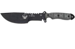 The TOPS Scullcrusher’s X-treme Blade is a special multi-tool survival knife. Due to the impressive blade thickness of 6.4 mm, this knife can certainly take a blow. Cartels are provided on the back of the knife which can be used to cut. The striking recurve in the middle of the cut is very suitable for, for example, rounding off wooden parts, or for ripping open shot game. Due to the overall shape of the blade, the knife is also very suitable for lighter cutting.