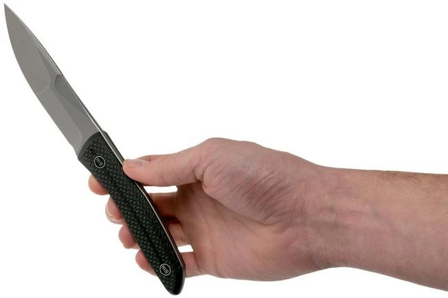 The WE Knife Reazio 921 is a fixed knife, designed by Toni Tietzel. This young German knife maker is known for his slim and functional fixed knives. This Reazio is the perfect example. Characterizing about this knife is the extensive compound grind. This means that the knife has a hollow grind with two different thicknesses. As such you have a thinner part for the fine work, and a slightly thicker part for the more demanding tasks. The top of the spine is also thicker. Looks amazing.